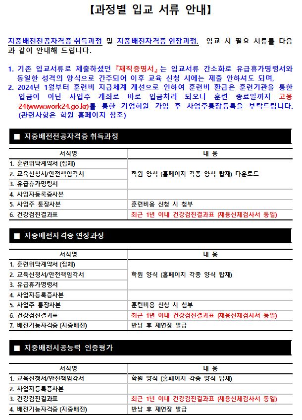 ■ 과정별 입교필요서류 안내 ■ 페이지 정보 작성자 남부지중 댓글 0건 조회 1,917회 작성일 18-10-25 11:19 목록 본문 . 이전글■자격증 재발급 신청방법 변경 및 재발급 신청양식 안내■ 20.11.26 다음글■취득과정■ 1. 훈련위탁계약서(집체) 18.10.25 댓글 0 댓글목록 등록된 댓글이 없습니다.