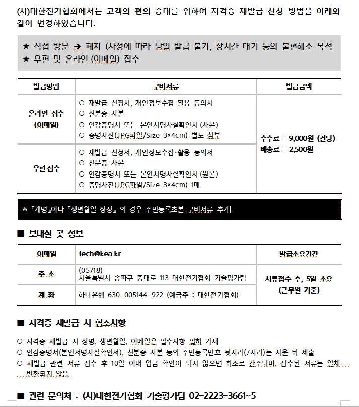 ■자격증 재발급 신청방법 변경 및 재발급 신청양식 안내■