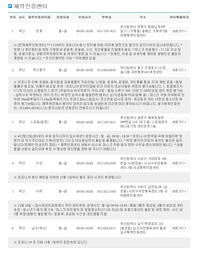 부산, 경남지역 체력인증센터를 안내해 드립니다.