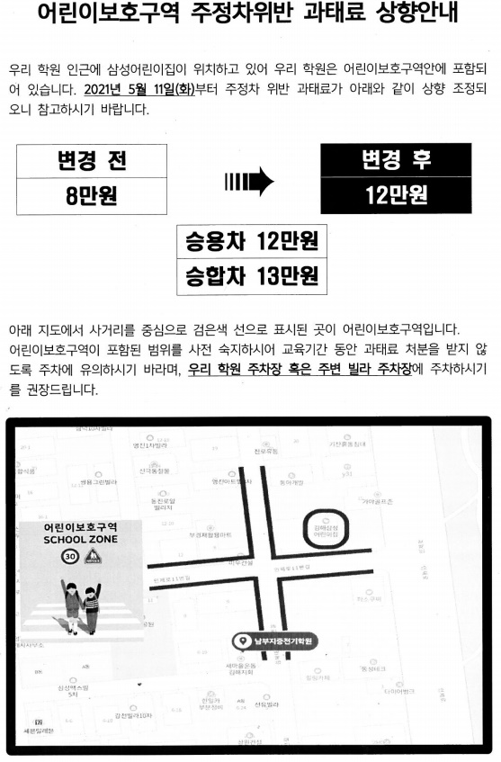 어린이보호구역 주정차위반 과태료 상향 및 주차 안내