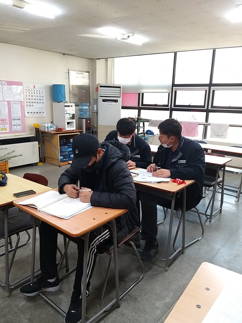 쉬는 시간에도 필기시험 공부로 한창 열공 중^^
